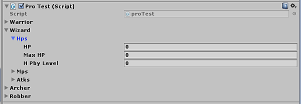 你在Unity的Inspector的版面可以輕鬆看到你的職業與屬性